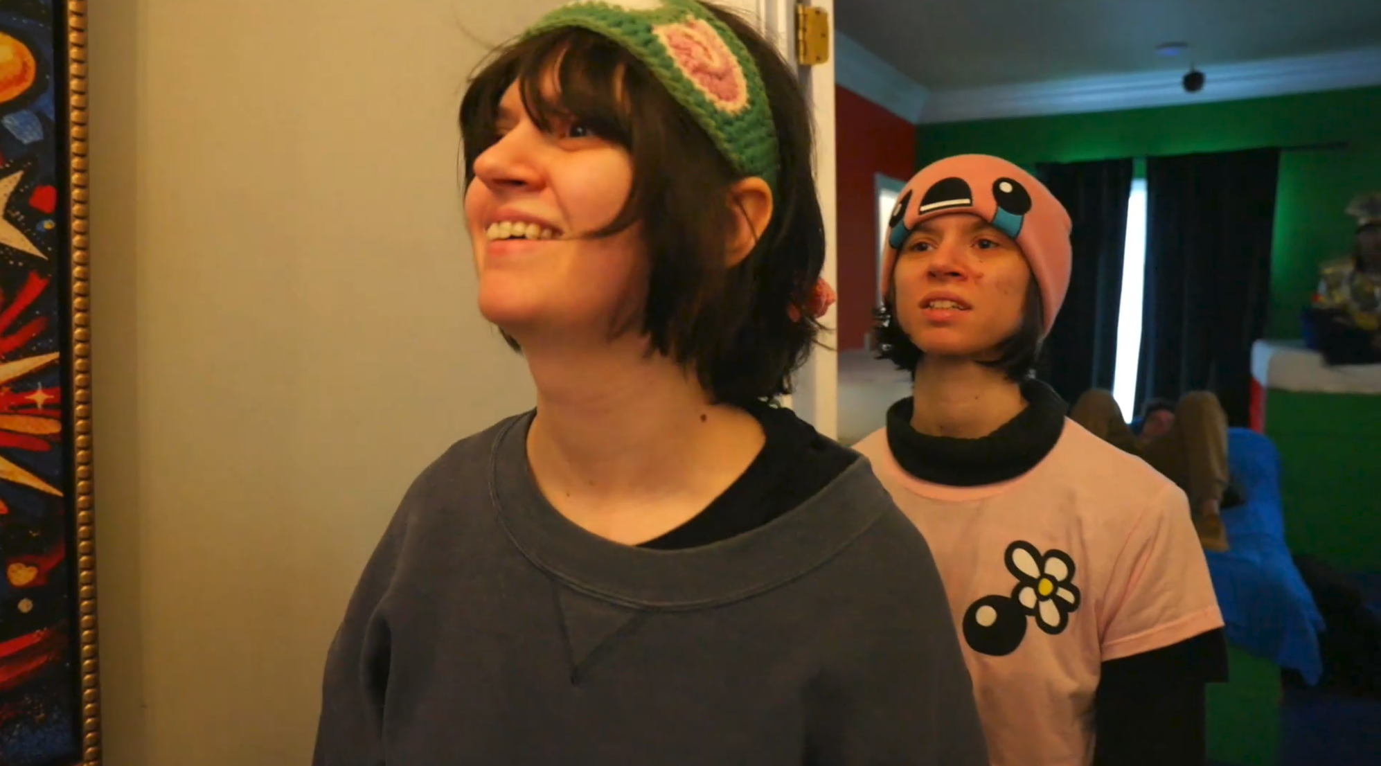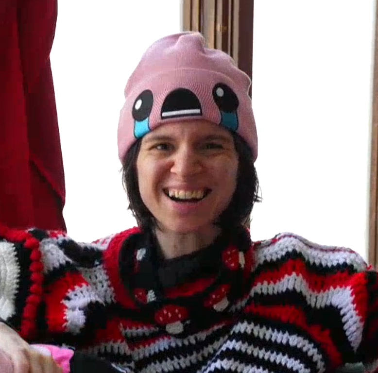 Bingo really loves her Binding of Isaac beanie