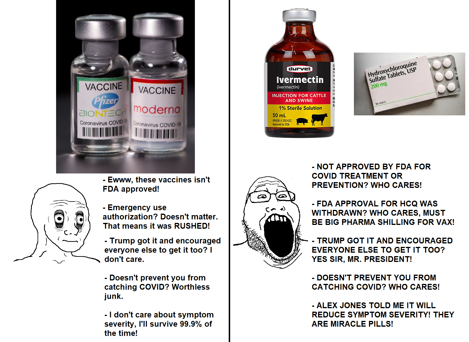 >>219116944What's funnier is Branch Covidians still trying to claim victory because the vaccine didn't cause mass death, nevermind that it was rushed and ineffective at preventing infection or transmission (as admitted by Pfizer themselves), nevermind that they were proven wrong on everything from masks, social distancing, and lockdowns