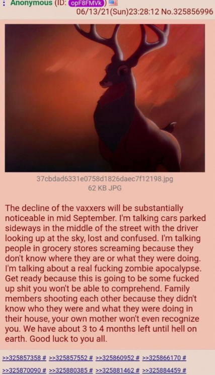 >>219116944>I remember all of the panicfag red deer threads on /pol/, turned out none of the shit they claimed was going to happenyeah i have screenshots of retards on pol claiming the vaccines were going to cause covid to mutate into something deadlier.