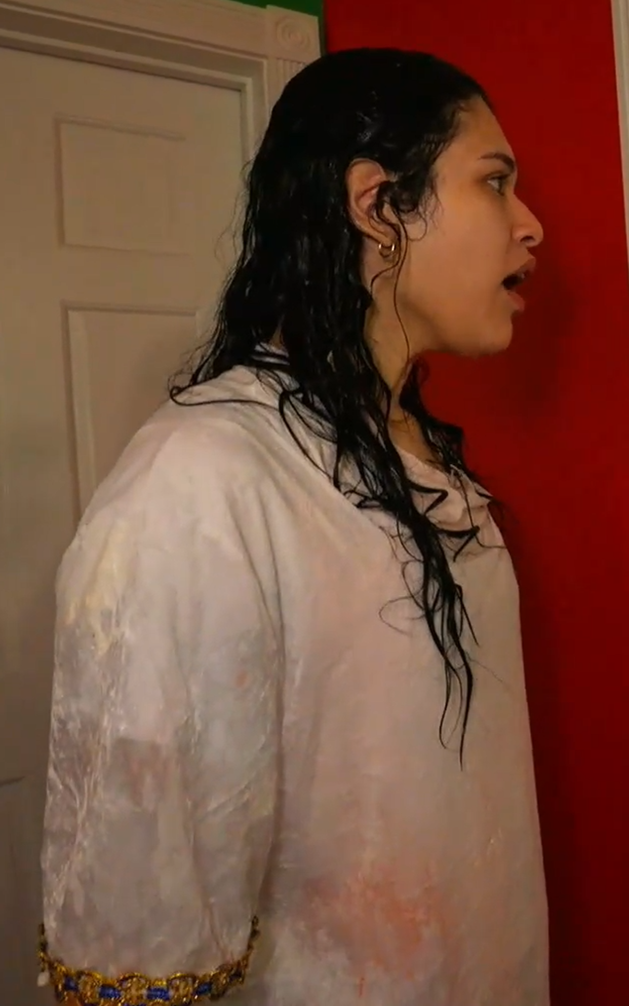she must really be insane to not be bothered by being covered in puke for 20 minutes without conceding