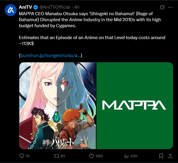 I read somewhere that an entry level position for an animator at a japanese studio is between 5-10k a year, and senior animators earn 20k a year.With those kinds of wages your budget is smaller overall. Burgers working for any studio/corpo throw a fit if they can't spend 90% of the day sending memos to each other and drinking smoothies and cappuccinos.