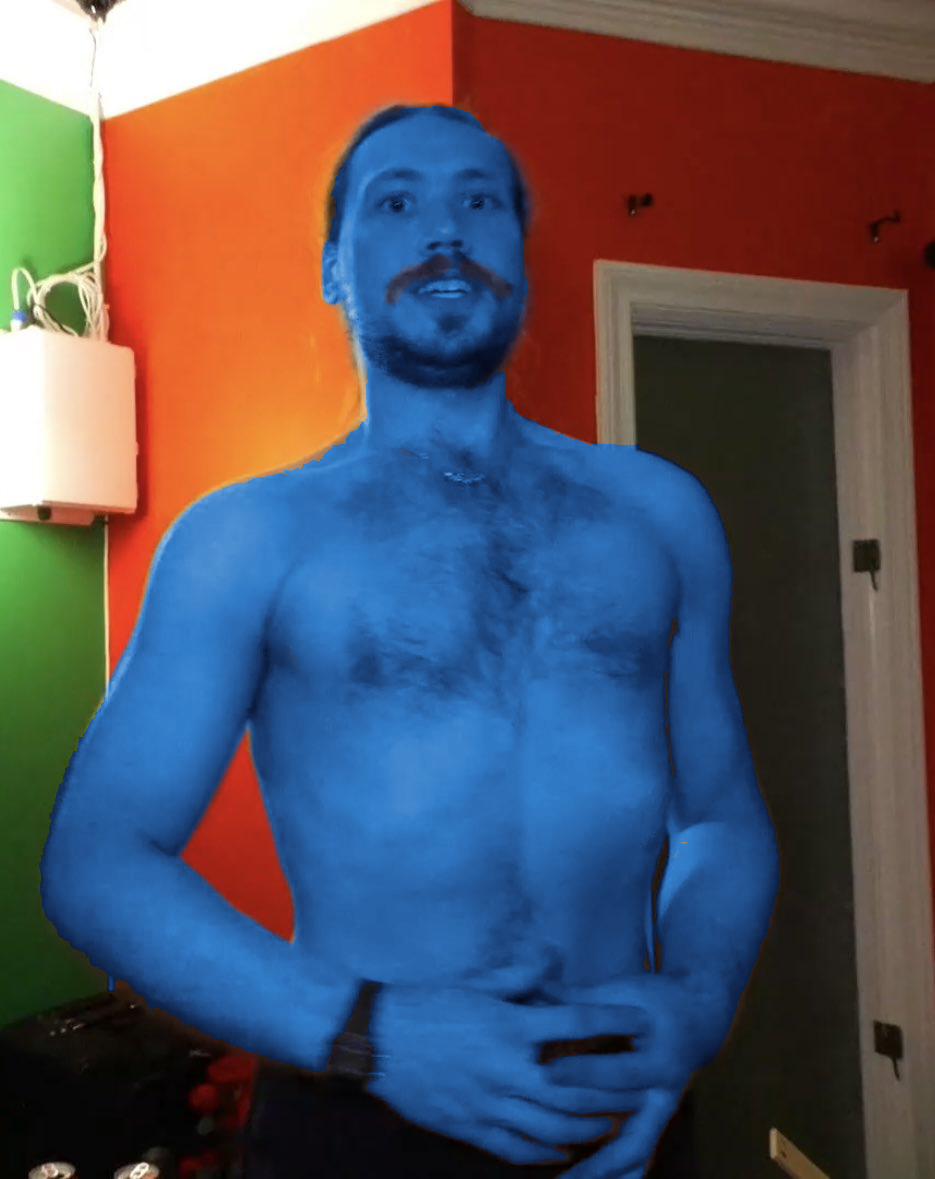 I think Bashir is blue because of the indigo blue his clothes have (?).He brought performative indigo blue dyed clothes to fishtank and probably never wore them before and panicked when he looked in the mirror day 2 and was blue. Then he kept asking production to google if indigo dye could stain skin and if it was dangerous.just a theory