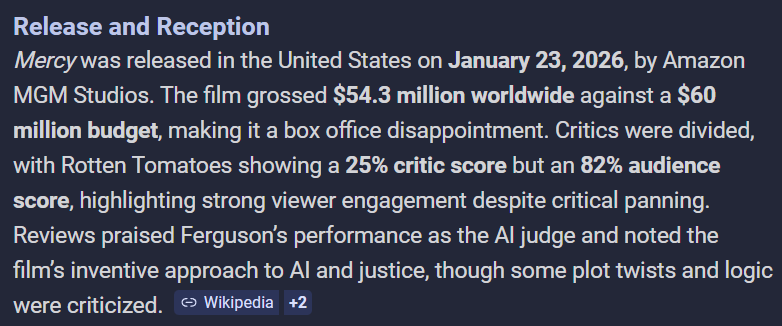 Just finished watching it>>219154217Audience score is correct, RT score is gay