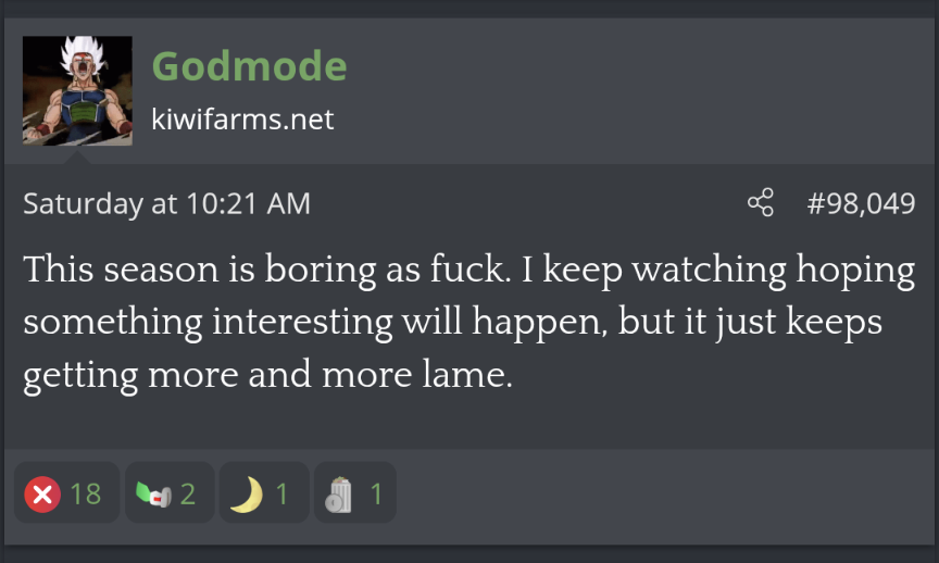 WHY IS THIS SEASON SO BORING?I WISH I WAS EMPLOYED SO I WOULDN'T WATCH THIS SHIT