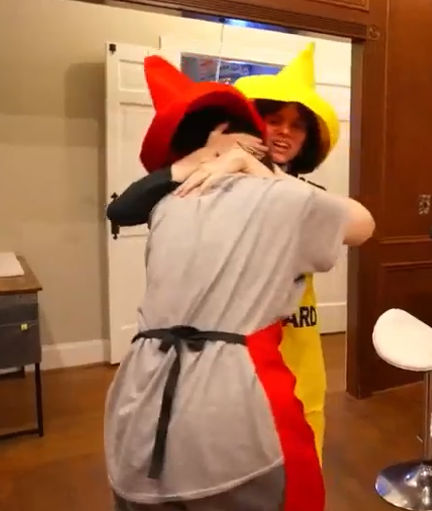 >alex kneels to ben on the stairs and apologizesKek