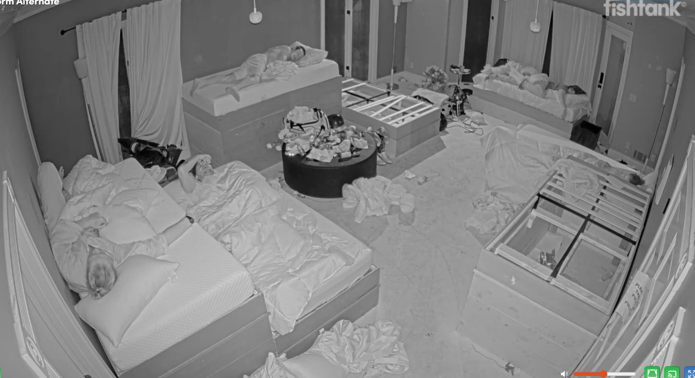 The actual contestants are sound asleep while this nigga trips the fuck out