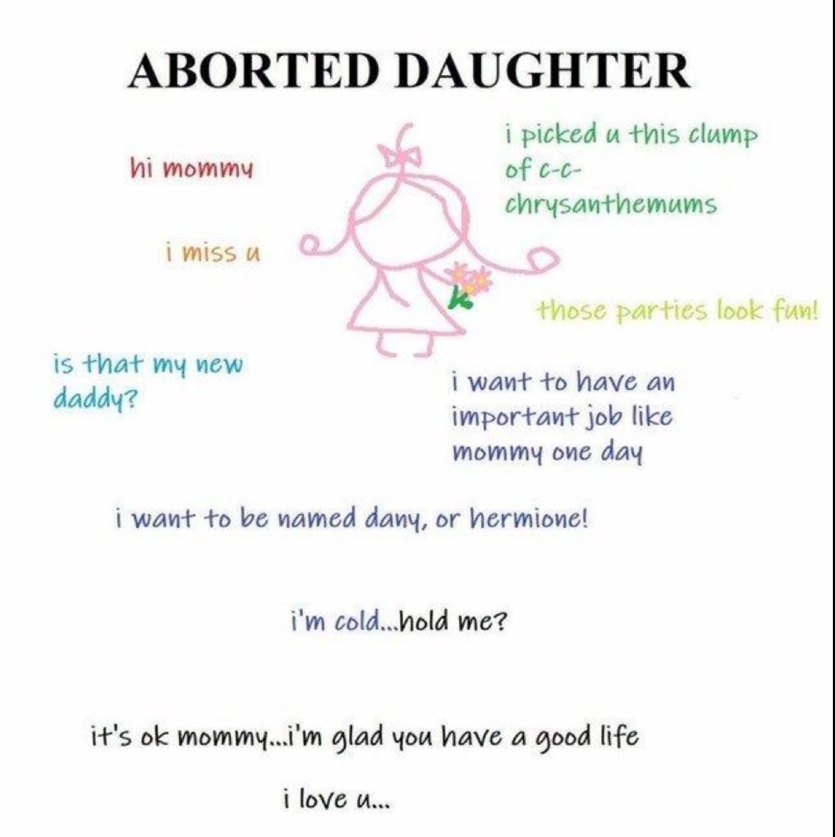 Louis CK has to the best answer to the abortion issue>Admit you're killing a a baby but you are allowed to do itYou took a life. You weighed out the pros and cons of a letting a person live and you made a call that it's more important they they die and you are less burdened. It's legal, but still bad. Especially when your have a non aborted kid that's kind of fucked up that one got to live and the other didn't.