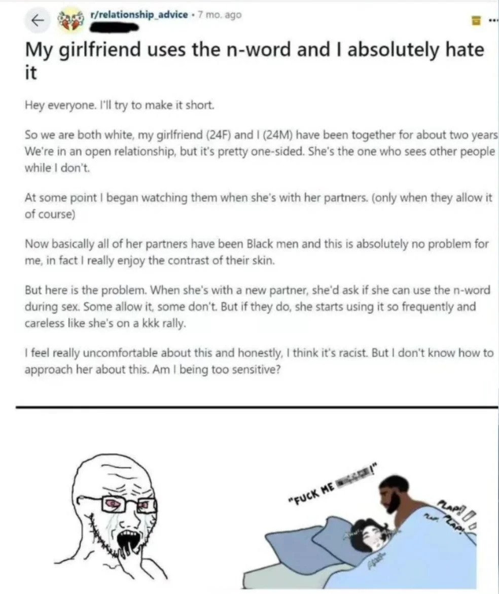 >>219226087The interesting thing about the cuckold topic is how interested in it chuds are. Why give it so much attention?>>219226112Don't worry. You'll croak soon, old man. And we'll throw a party when you're gone :P