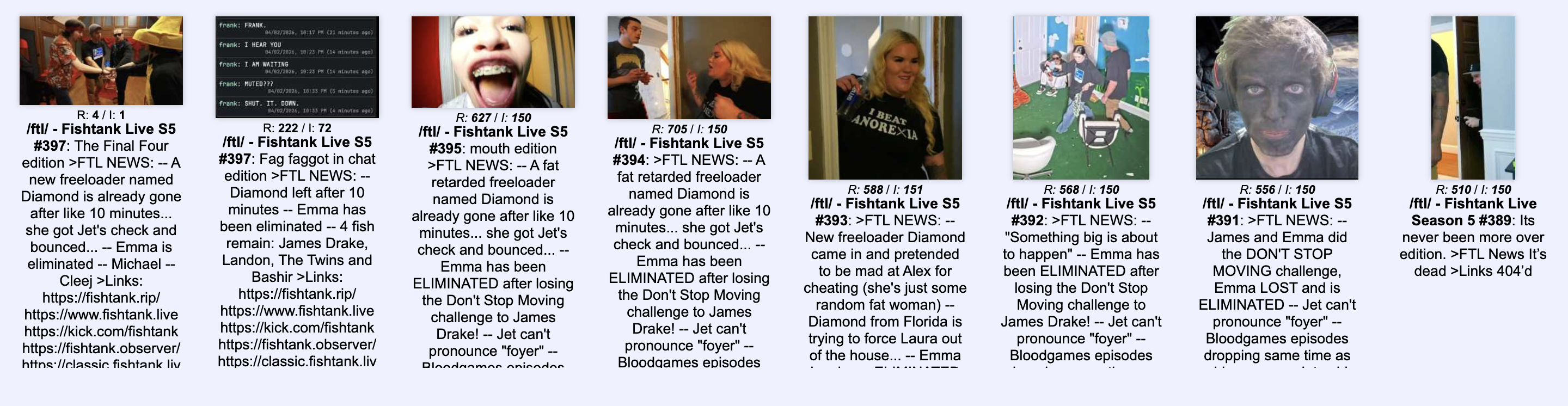 Fag faggot in chat edition>FTL NEWS:-- Diamond left after 10 minutes-- Emma has been eliminated -- 4 fish remain: James Drake, Landon, The Twins and Bashir>Links:https://fishtank.rip/https://www.fishtank.livehttps://kick.com/fishtankhttps://fishtank.observer/https://classic.fishtank.livehttps://x.com/fishtankislivehttps://www.instagram.com/fishtank.live/https://www.youtube.com/@fishtankislivePrevious: >>219264910 >>219255548