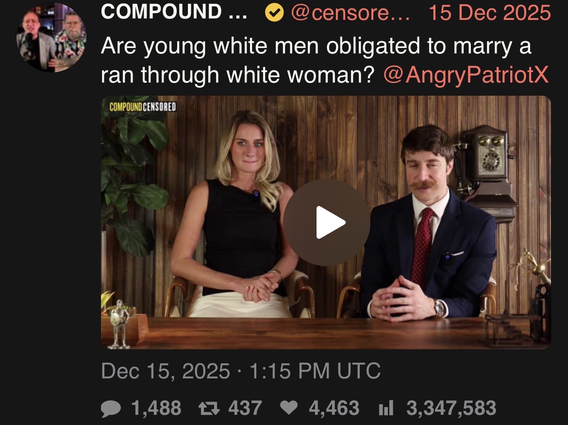 >>219268291Neither does the right. They’ve been in power for several years with nothing to show for it. Now they’re asking you to marry whores for their retarded kike project. >They didn’t regulate predatory dating apps>Didn’t create better infrastructure for community>Let the manosphere rape their movement and further undermine traditional values by propping mutts like TateEverything the right has done in the past ten years has been nothing but lip service.