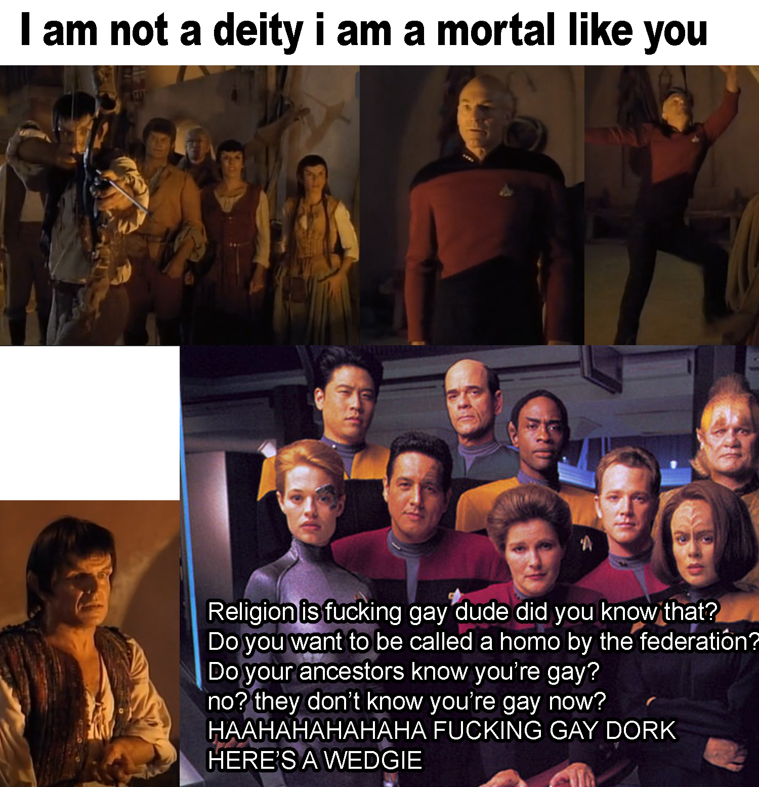 >>219274490The real answer is Sisko. Picard is a superior diplomat but Sisko is the better all around officer, particularly in wartime, and still manages to be an accomplished diplomat himself. Janeway isn't even a good captain let alone "greatest", the entire premise of her show is founded on her lack of good judgement and leadership. Reminder that there is an episode where even her starfleet crew, even Tuvok, directly disobey her orders and go around her back to try and get home faster because Janeway is such a poor officer and has such poor judgement that even Tuvok couldn't let it stand. There is at least one such "Janeway is a bad captain" decision in every season, often more than one.