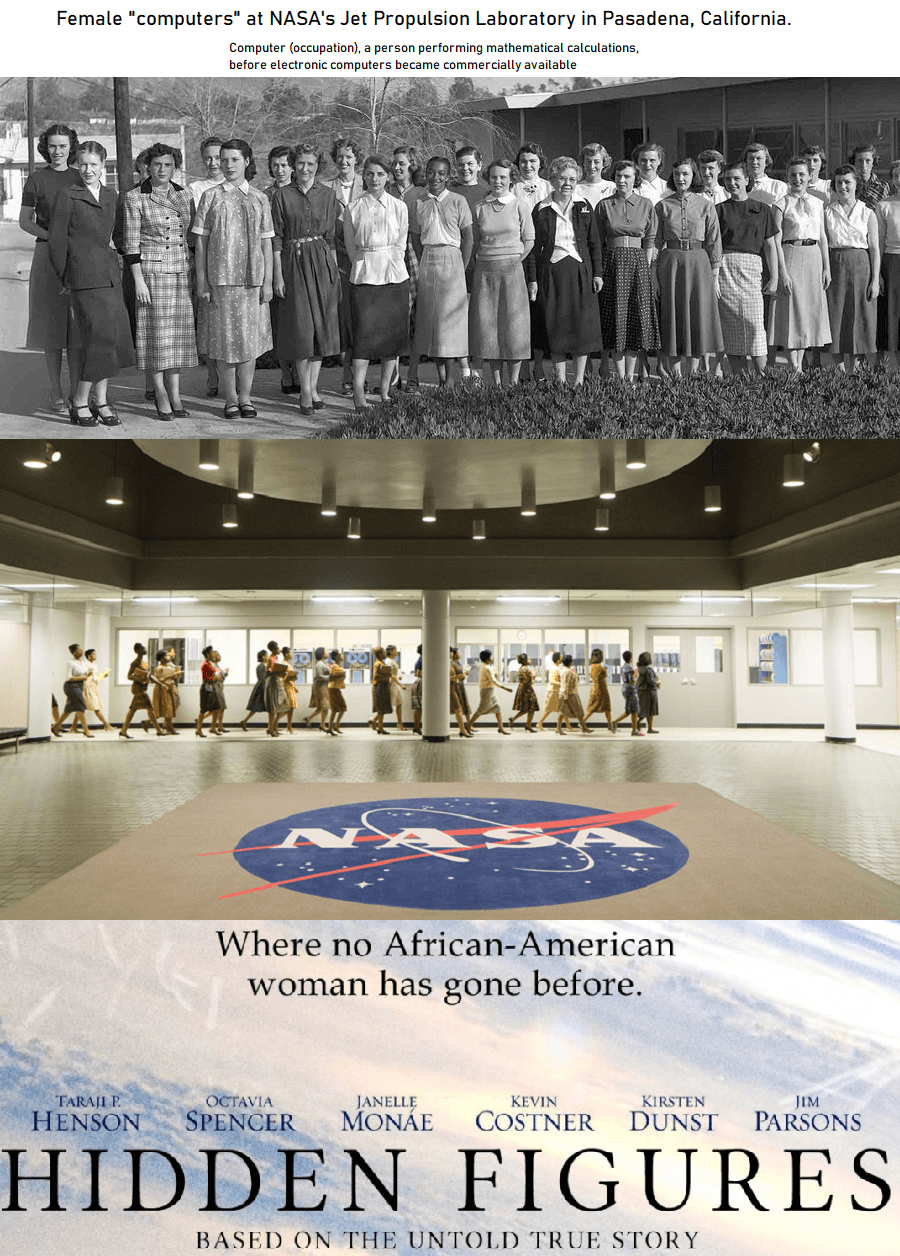 as if all the exaggerations and lies around pic related weren't enough, now there was even a team of black women that made the whole mission possible? I guess that clean floors and bathrooms are kinda important to allow engineers to focus on their work