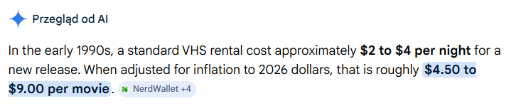 >>219321687>>219321539>>219321115>>219306699New releases don't go directly to streaming services anyway, so it's still expensive to watch new releases if you don't pirate, because you have to digitally rent instead of physically rent, that's the only difference. Streaming subscriptions are mostly there to give you access to A: a massive back catalog of old shit and B: whatever original bs they are pumping out.Being able to rent a new release and then get your filler from cheaper, older rentals or buying bargain bin could definitely be cheaper. And lets be realistic, most people don't just have one streaming service, so if you consider that people generally sub to at least two, and then that if you wanted to watch new shit you'd have to digitally rent anyway, it's definitely not true that watching movies used to be more expensive.