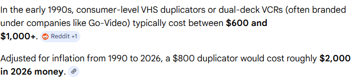>>219306959>VHS duplicators lmao i have literally never heard this before2 VCRs or a VCR and a camera that took full size VHS. most households had some combination of those things