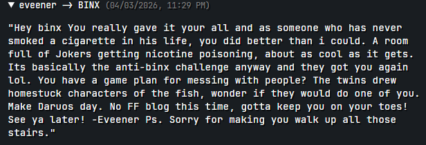 -- Binx was USELESS as expected!
