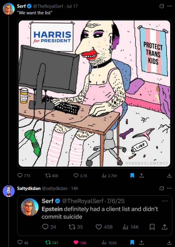 >>219310541These fake right-wing faggots need to fuck off already.They do nothing but poison the well by pushing traditional values while doing fuck all to push them.They'll even go as far as defend pedophiles if they can paint it as being based.They're culture vultures of the worst kind and Musk is a faggot for promoting these queers.