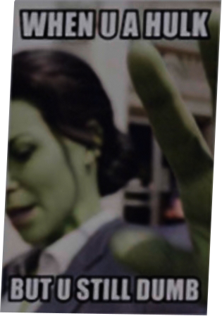 >>219321418Hulk: Is a literal manifestation of Child Abuse. She-Hulk: Is just a slut because she didn't party in college.