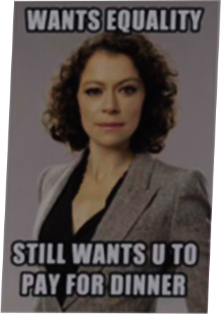 >>219321498The problem with the meme is that the people writing this shit genuinely do think the two scenarios are equivalent. You see this all the time if you were one of the people bamboozled by 90's feminisim's reinvention as an ideology for everyone, its reframing of patriarchy as something that impacts both women and men negatively, and its false promise to address both; as soon as they used millennial men to attain actual power in politics, media, and corporate HR all that shit went right out the window and attempting to even *talk* about men's issues with society, the ways in which it treats as as disposable, the problems men face is met with something between dismissive handwaving that those aren't REAL problems compared to women's hideous trials...earning slightly less money in the course of their careers because they work less or as a group willingly choose jobs that pay less, or having to acknowledge the existence of ugly men long enough to reject them, or having to earn the respect of colleagues rather than just being handed it for having a cunt on the one hand, and active, bigoted, hate-spewing misogyny on the other.You can't mock these people because no matter how ridiculous the comparison is to any sane person, to a feminism a woman's problem is definitionally the only important one, no matter how trivial.