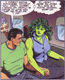 >>219326707Didn't she turn into She Hulk, bait a guy into fucking, drag him to bed, then cook him breakfast as Jennifer, and lose her shit when the guy tried to escape the next morning?It was a one night stand. Dude woke up next to her and realized that her human form was garbage.Woman moment when she lost her mind and tried to chase him as he was escaping out the door.