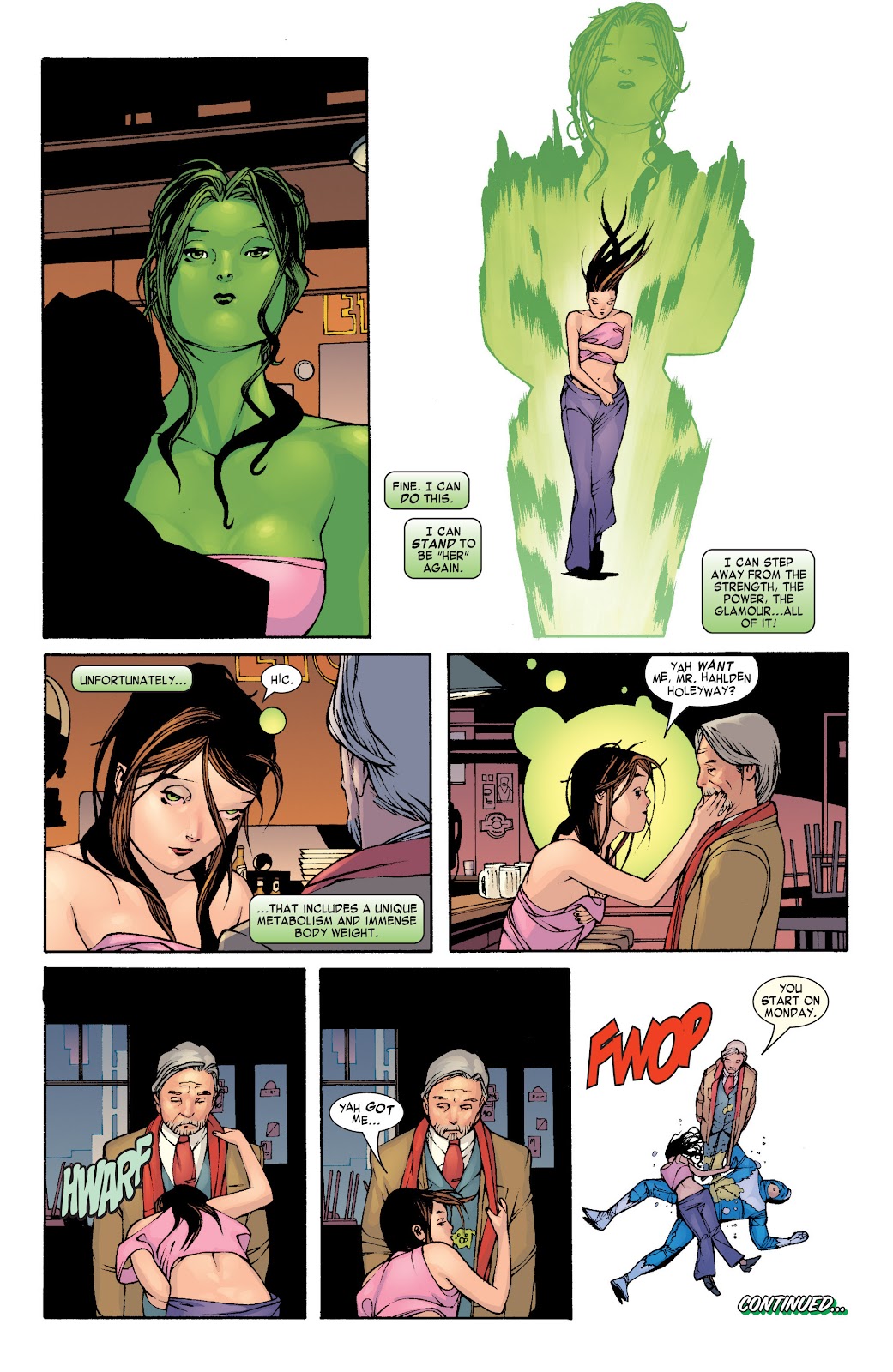 >>219326707Didn't she turn into She Hulk, bait a guy into fucking, drag him to bed, then cook him breakfast as Jennifer, and lose her shit when the guy tried to escape the next morning?It was a one night stand. Dude woke up next to her and realized that her human form was garbage.Woman moment when she lost her mind and tried to chase him as he was escaping out the door.