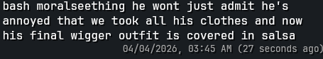 An hour ago, then. Who cares, they were in confessional with her trying to mess with Binx.