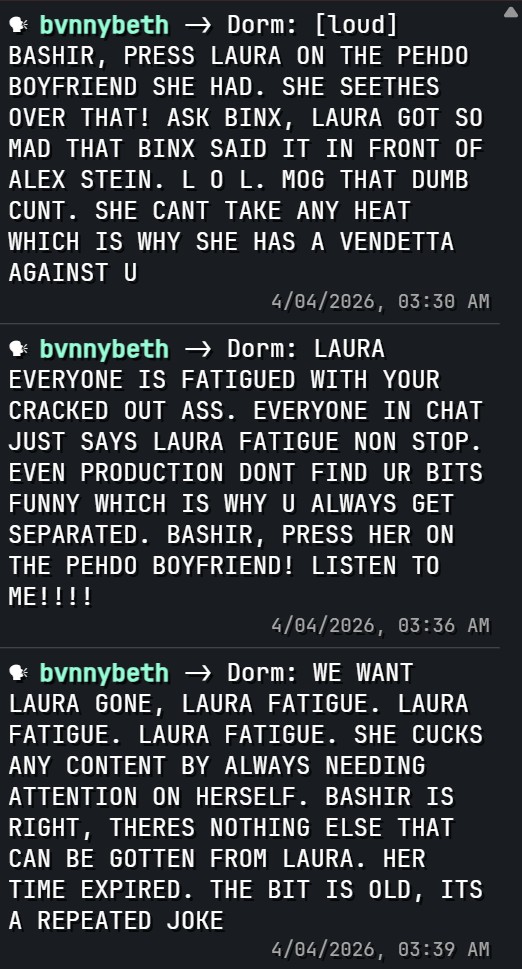 god i hope they throw lauras bitch ass off the show tonight