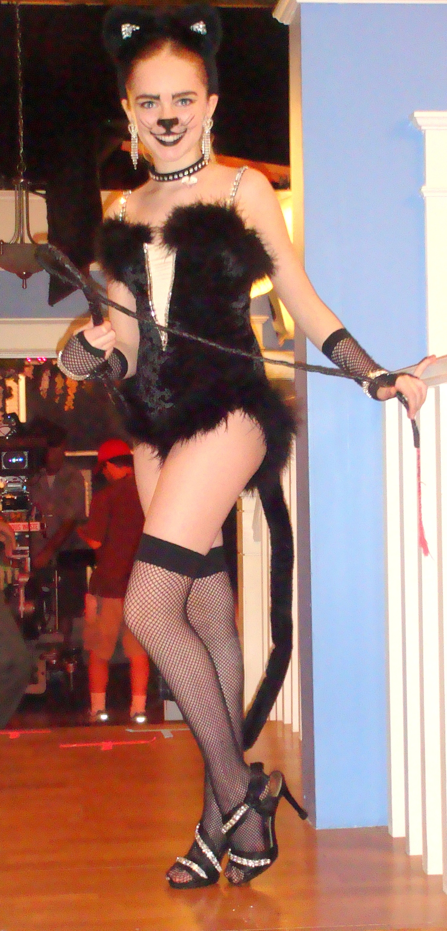 >>219341638Society in general, the connotation even in the show is that the girl is dressed up like a whore, with icongraphy of prostitutes like fishnets, skintight leotard, choker, etc. and using a bdsm whip