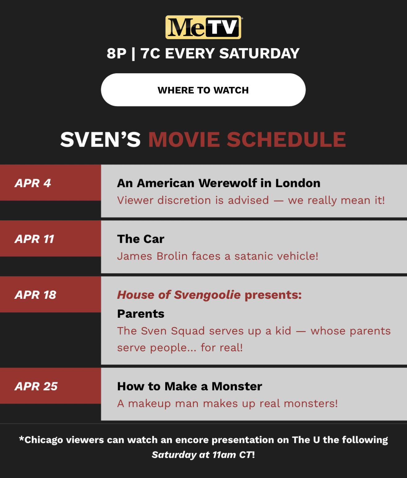 >What the heck is Svengoolie?Svengoolie is one of the last good TV horror hosts still on the air. Every saturday night at 8:00PM Eastern us boomers on /tv/ get together to watch a (sometimes terrible) old movie. You can watch over the airwaves on MeTV!CLEAR THE AIR LANES, CLEAR ALL THE AIR LANES FOR THE BIG BROADCASTTONIGHT'S MOVIE: An American Werewolf in London (1981)