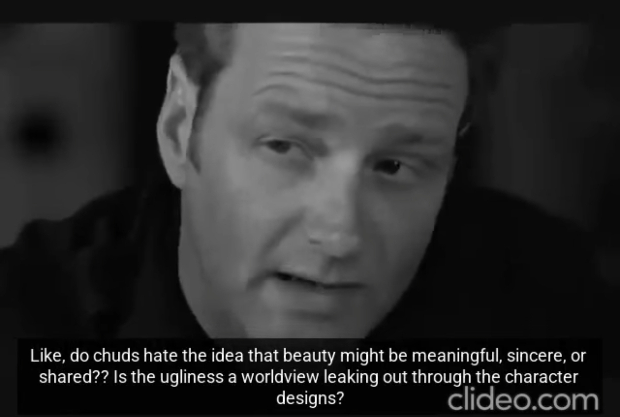 >>219347130>lefty meme now in video format, subs timing can't keep up with inept word diarrhea >tech illiterate watermark>we totally like beauty and sincerity, ugliness comes from your worldview :) lmao. Wonder how much longer the widespread communication failure can last until it reaches the breaking point even in these social cripple retards' hangouts.