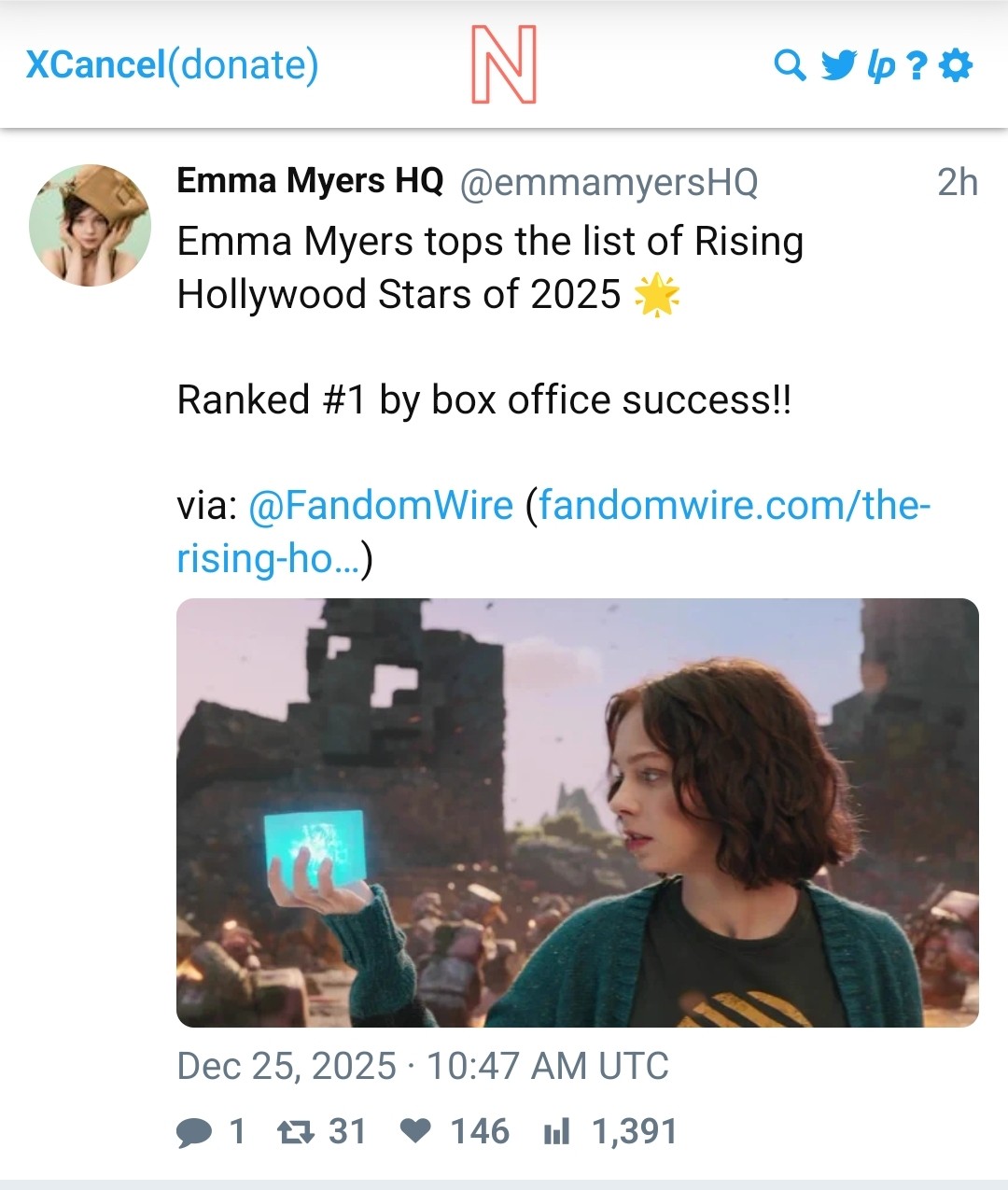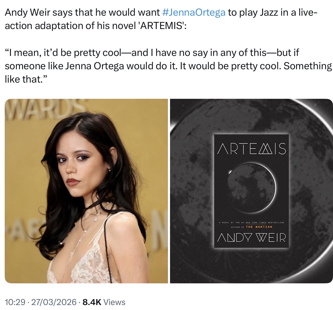 >>219346225>Jenna_OrtegaRealistically? Dropping out of Scream 7 hurt it. It would have kept her streak of successes going. Beetlejuice was big, but it was 2 years ago and her latest 'death of a unicorn' bombed. Scream 7 would have slotted in perfectly as a gap between Wednesday seasons. That said she still is doing pretty well. She has a JJ Abrams and Taika Waititi movie's in preproduction as well as the next season of Wednesday. Her career is stronger than like 99% of actors of her generation. If both those movies fail she'd be in some trouble, but even then she would have enough star power to keep getting more shots until her late 20s.