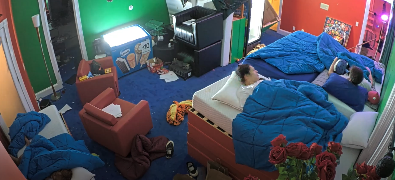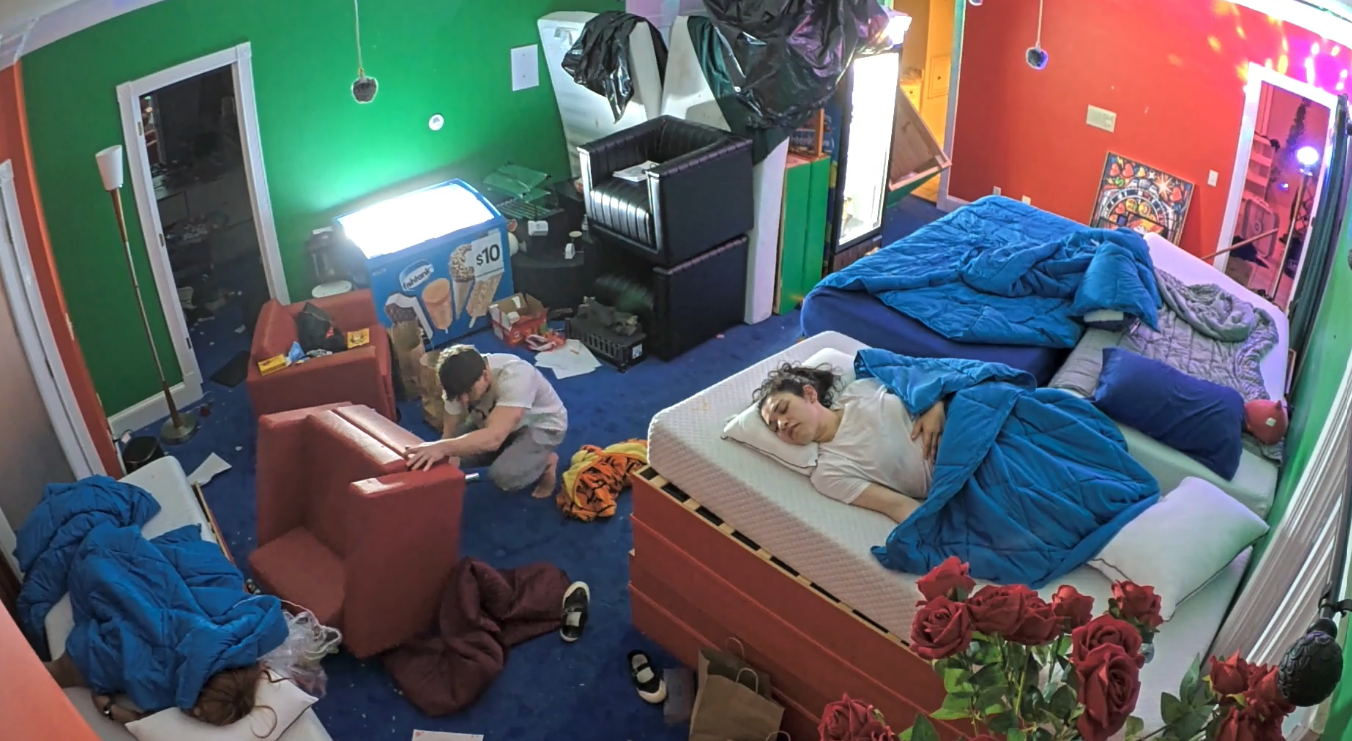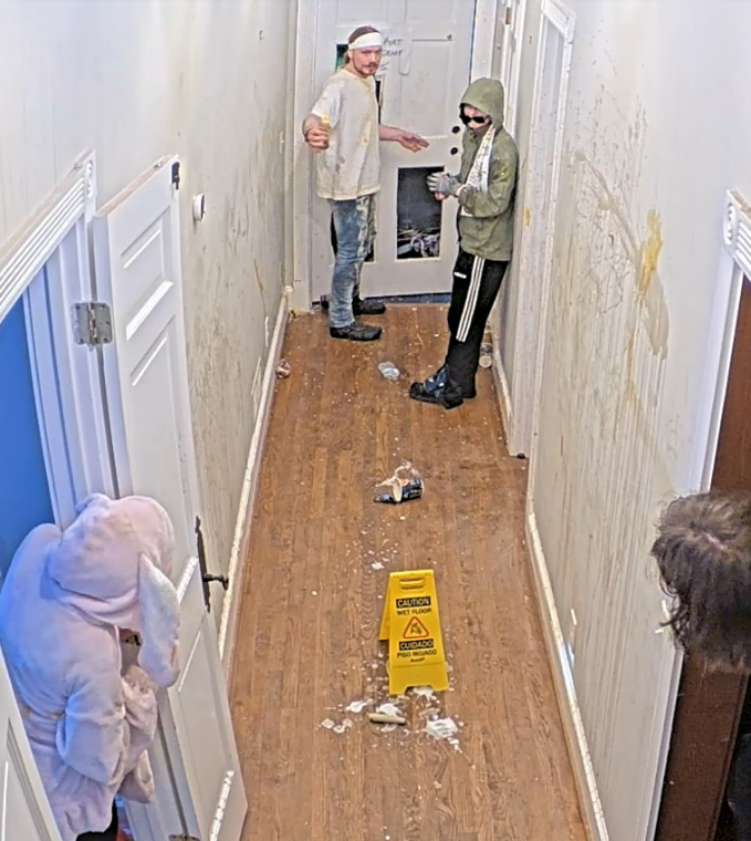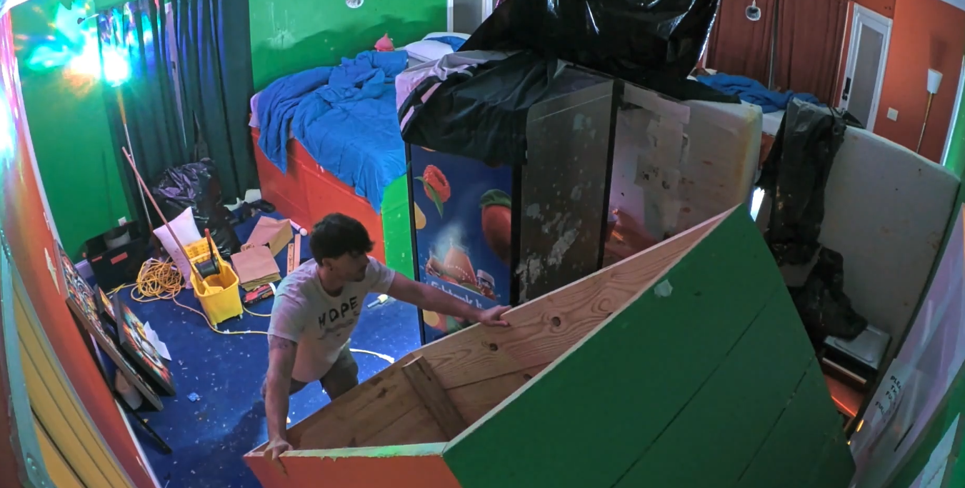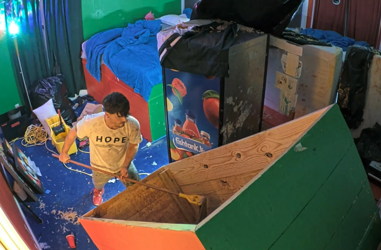 >MY ASSAULT HAS FAILED HOWEVER IF I STAND HERE LONG ENOUGH WITH THE SHOPVAC SURELY JAMES WILL PUNCH ME IN THE FACE AND GET ELIMINATED