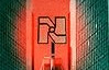 >Red glowing swaztika