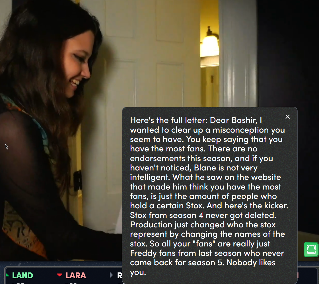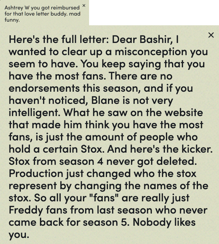 That letter is from Mints. BASH actually has the most fans on the fishtank site.