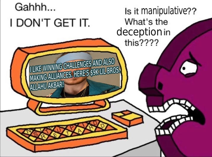 nta but he is sorta right.... i mean, the season collapsed when people started leaving. the economy got fucked, they needed people bad, and had to bring him back. like, even if this is true, you do realize he was eliminated once right?