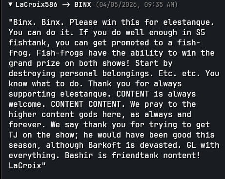 >vimp talking to herself doesn't know she's talking to binx