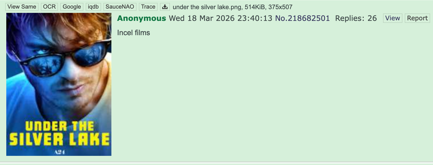 It’s a schizo movie. Just because he’s “le sexist” doesn’t make it incel core.