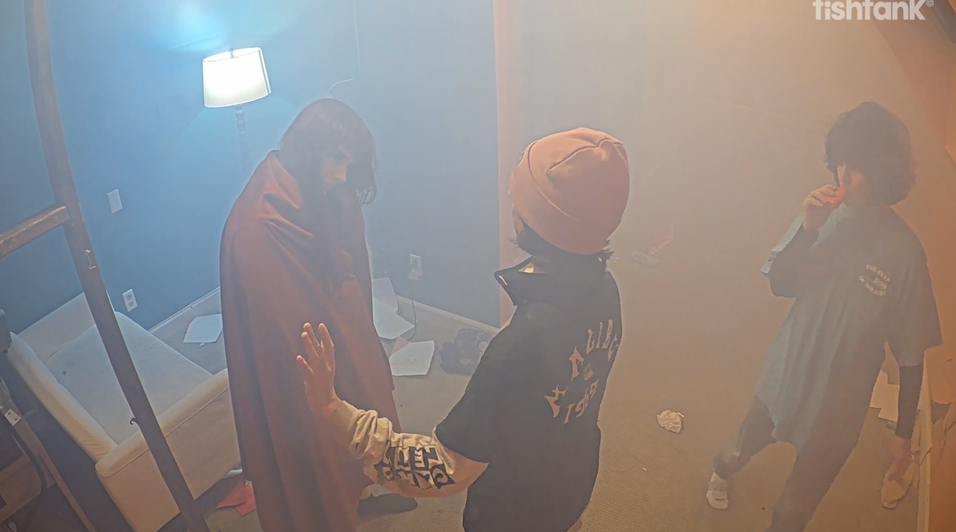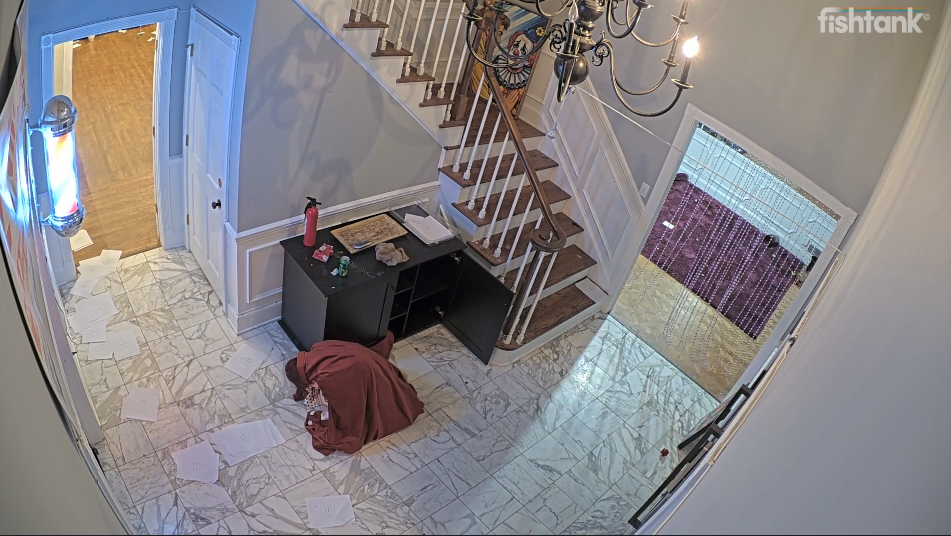 >>219402727>cams go down>come back up>house is empty but is dark and full of smoke>cams go back down>cams come up with the fish acting like nothing happened