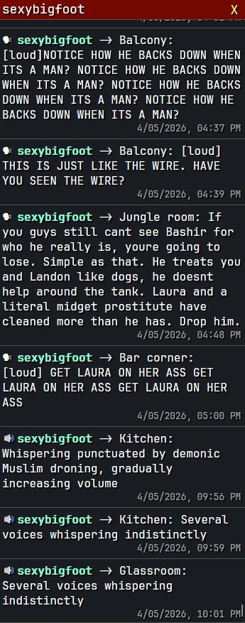 >>219402829HE not only failed the shit test he is now doubling down on failure (all while his room is undefended). Luckily Landons a retard for the moment until TTS pilots him to do something. Bashir deserves it for making it 23 days then losing it because he simp'd.