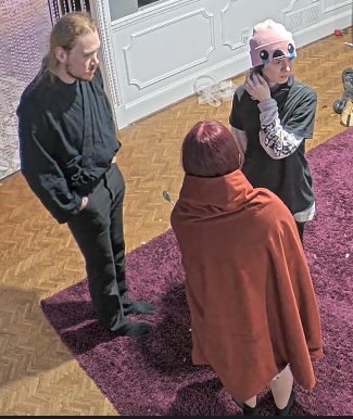 >>219402968They were talking about personal stuff and she acted all giddy when he was giving the headband