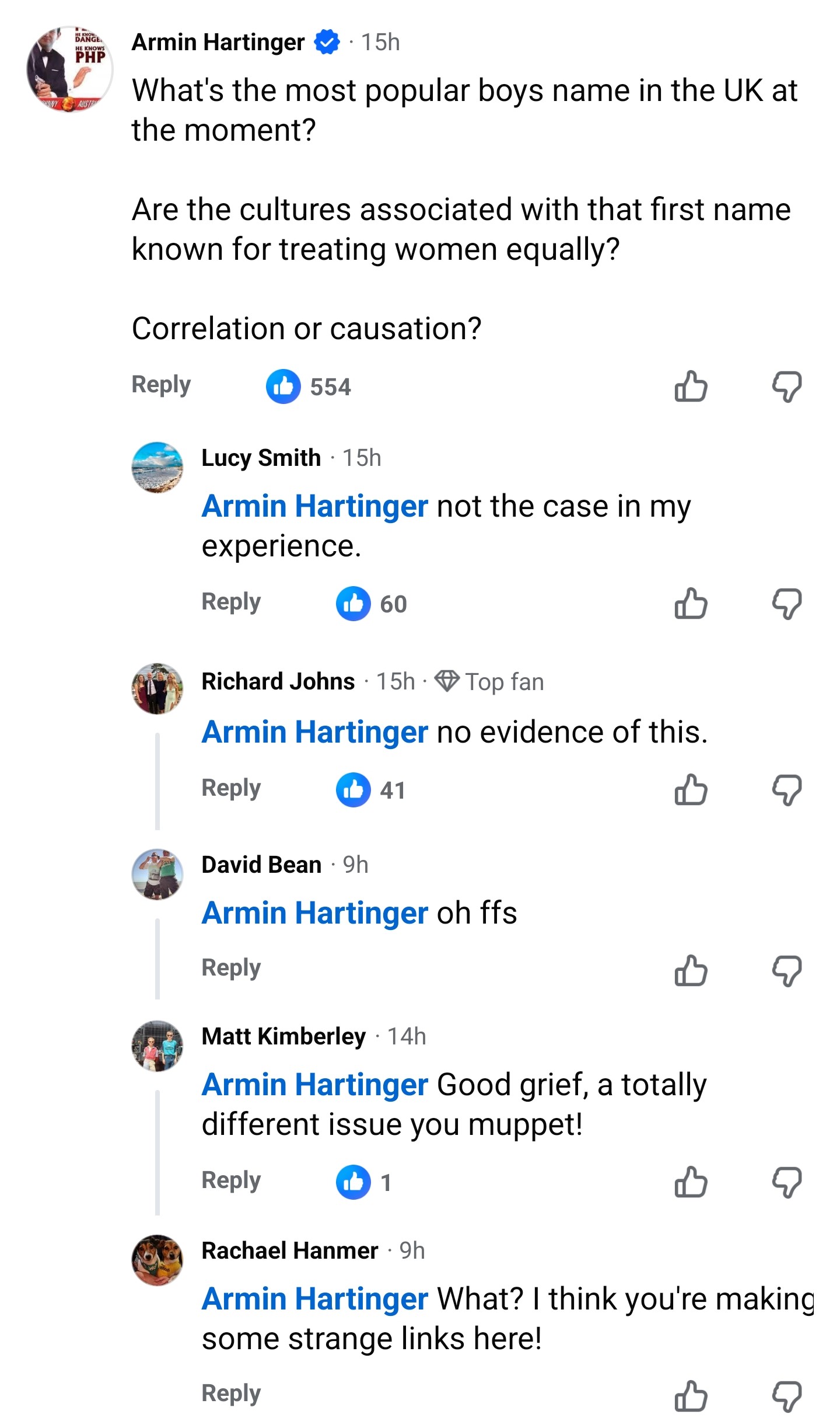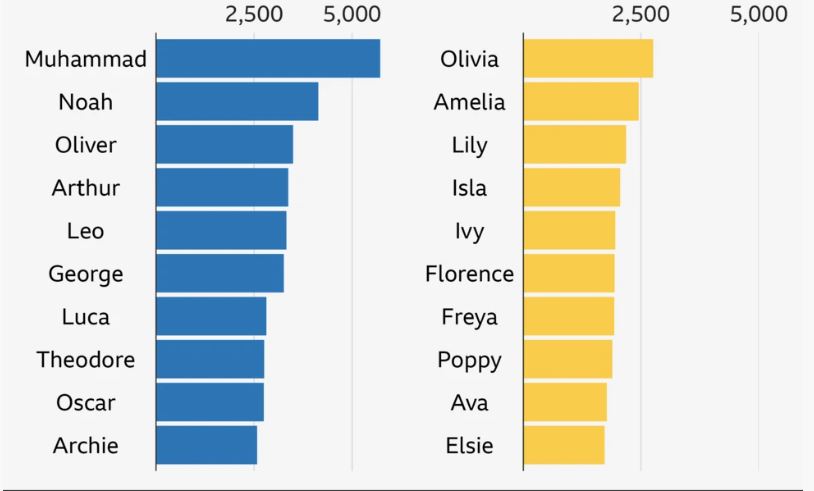 >>219407752The name Mohamad being the most popular in the UK is due to Muslims being comically uncreative. The rest of the top ten names are normal English names and the girls don't have a single non Euro name. Its just Muslims refuse to call their sons anything else.