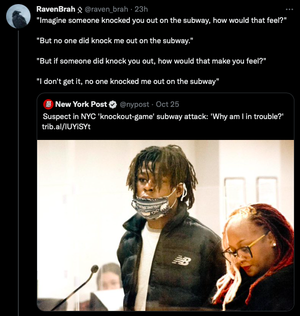 >>219408909This is the embodiment of black thinking, they are utterly incapable of putting themselves in other people's shoes. They have no empathy whatsoever which explains why they act like they do.