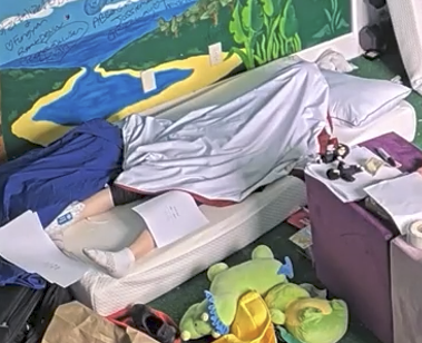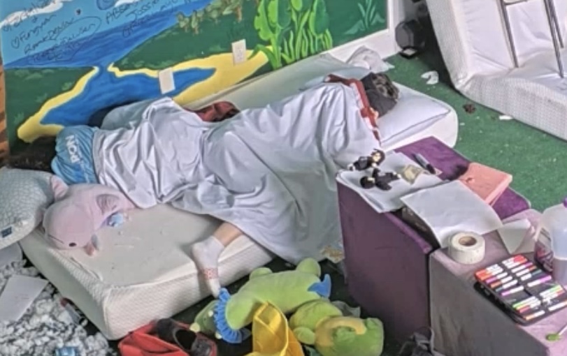 -- Bam stumbled in from the basement with one shoe missing and one shoe untied, seemingly to Jet's frustration and mild panic. Bam was quickly removed from the tank by Ben. All cams cut shortly after. (Rumors of Bam both relapsing and also being scammed by the wiggers spreading.)