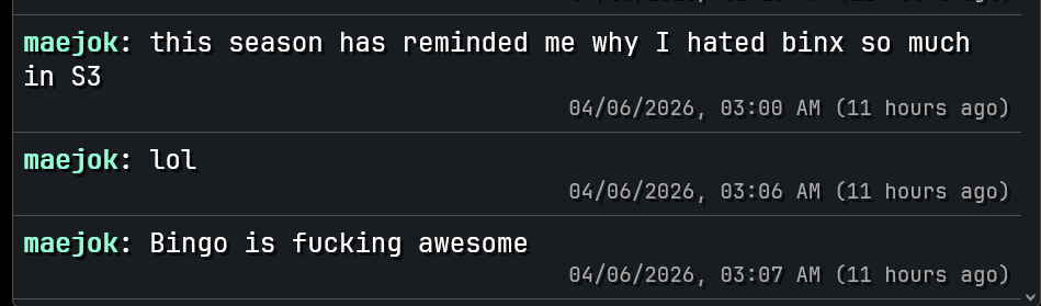 ok it's just binx droning on to antara now, finally I can get some fucking sleep