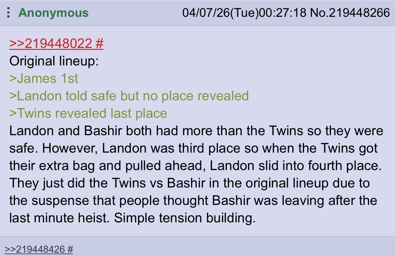 Also Binx was the one pushing him towards James and to fuck with Bashir because her IQ is a bout a quarter of what gassed up number she thinks it is.