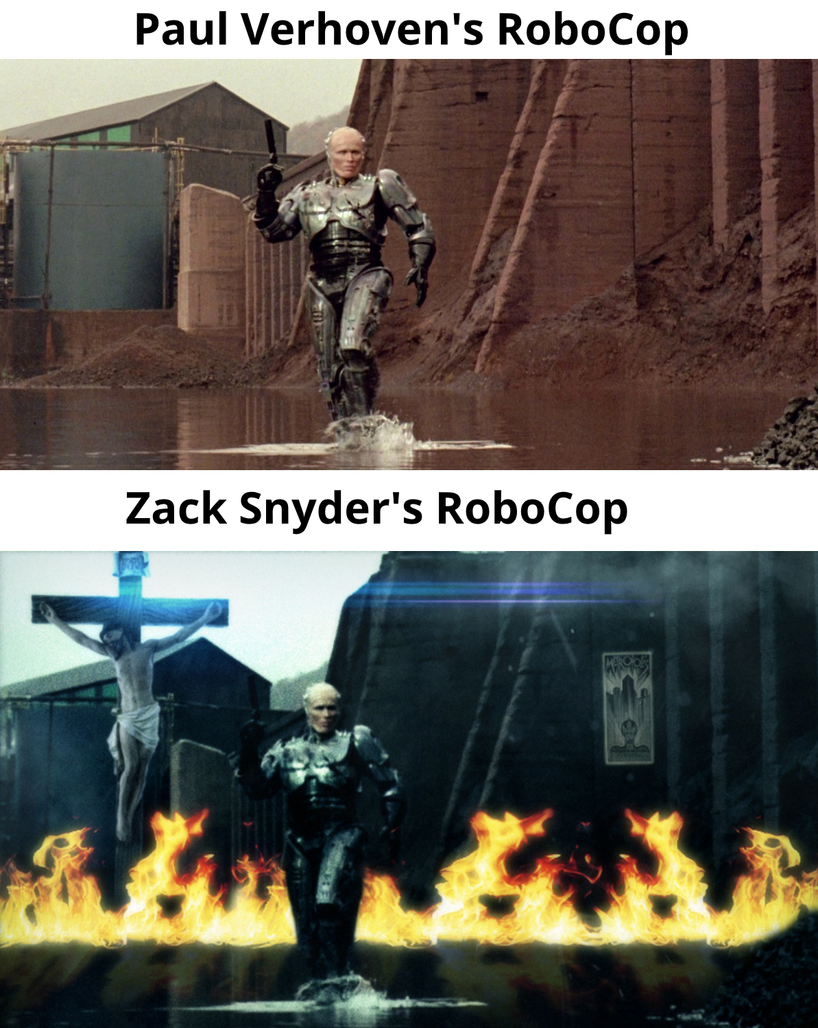 >>219456215If OCP gave Robocop an artificial face, then I have to wonder why they would model it on Murphy's face. They could have given him a new face, and it would have been more practical to do so. In giving him Murphy's face they cause discomfort for his colleagues in the police department, and greatly increase the chance of him breaking his programming and reclaiming his human identity. So why do that?>2. Gives what remains of Robocop's human psychology a familiar face to look at and keep him from going insane.No, it makes him much more likely to go insane. It's an aggravating link to the latent humanity trapped within the cyborg. This is not the ideal situation for OCP, and that's why I think they had to use Murphy's real face for whatever reason.
