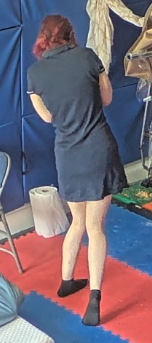 she's facing away from him...