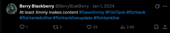 Smaack would want me to format edition>FTL NEWS:- Letty was REJECTED by James "James Drake" Drake- Bongo major crash out on Bingo- Landon and binx have been eliminated- Blane left- Blonde Vimp is here- We don't know where Bam Margera is or what happened>Links:https://fishtank.rip/https://www.fishtank.livehttps://kick.com/fishtankhttps://fishtank.observer/https://classic.fishtank.livehttps://x.com/fishtankislivehttps://www.instagram.com/fishtank.live/https://www.youtube.com/@fishtankislivehttps://fishtanklive.fandom.com/wiki/Fishtanklive_Wiki>>219458621