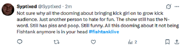 >>219461317>>219461264If you missed this moment, you're not a real Fishtank fan.That was CLUCKIN' brutal.She really cold-COCKED that motherCLUCKER.She made a real CLUCKOLD out of him.Kimmee, stop! You've BATTERED that bird enough.And you hit him with the secret "11 HURTS and SLICES".The weak should fear the strong, BUCKAAAAWWWWW