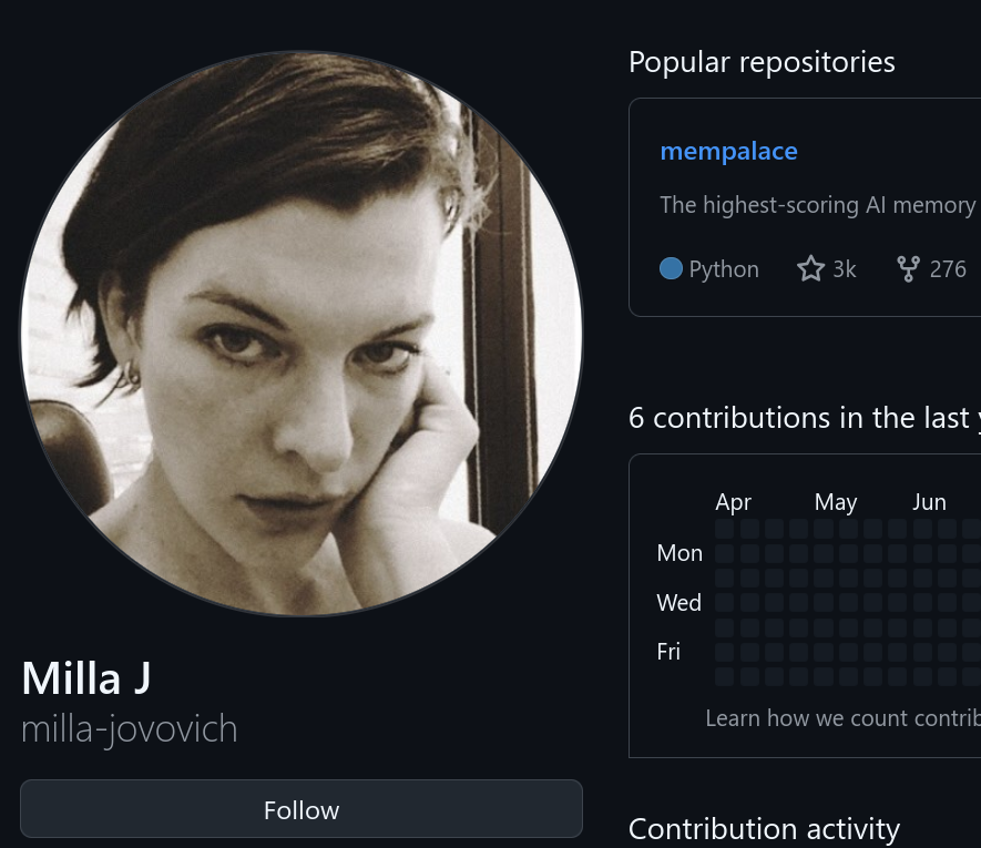 /tv/ meets /g/Apparently Milla Jovovich is a female programmer now-https://github.com/milla-jovovich