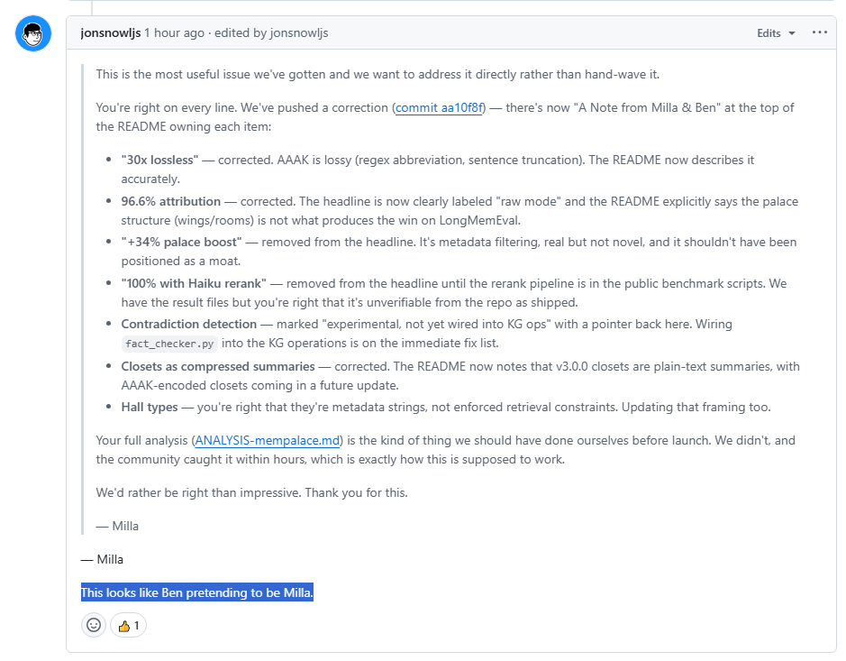 >>219465557>What inspired the idea of MemPalace is that I realized after months of meticulous filing, AI is just not great at finding things, even if you keep the best files. Every system out there still has it using keywords to search through and that’s really clunky and messy in my opinion. In the end, your folder is like a huge warehouse and all those files are akin to a pile of junk with dates and names on it, so you’re still having to do these archaic word searches across thousands of documents and in the end, probably not even finding exactly what you were looking for.>Which gave me an idea. I wanted to create a new way to make filing and retrieving more intuitive.I had read a lot about how Ancient Greeks memorized long speeches and how the most famous memory masters are able to remember up to 70k decimal places of the number Pie. I felt like we should be able to give AI the ability to remember information in a more “organic” way. And how this was achieved was through what experts call a “Memory Palace”. >I came up with the architecture which is fairly logical: splitting the big, open space into different rooms. This took me months of making many mistakes and starting from scratch (and with almost 1k docs, I’m sure anyone can relate how frustrating it got), but in the end, it was worth it. Because out of all that research and various blueprints that didn’t work, I finally managed to create the architecture and Ben engineered and “fine tuned”, that brought our “MemPalace” to life.